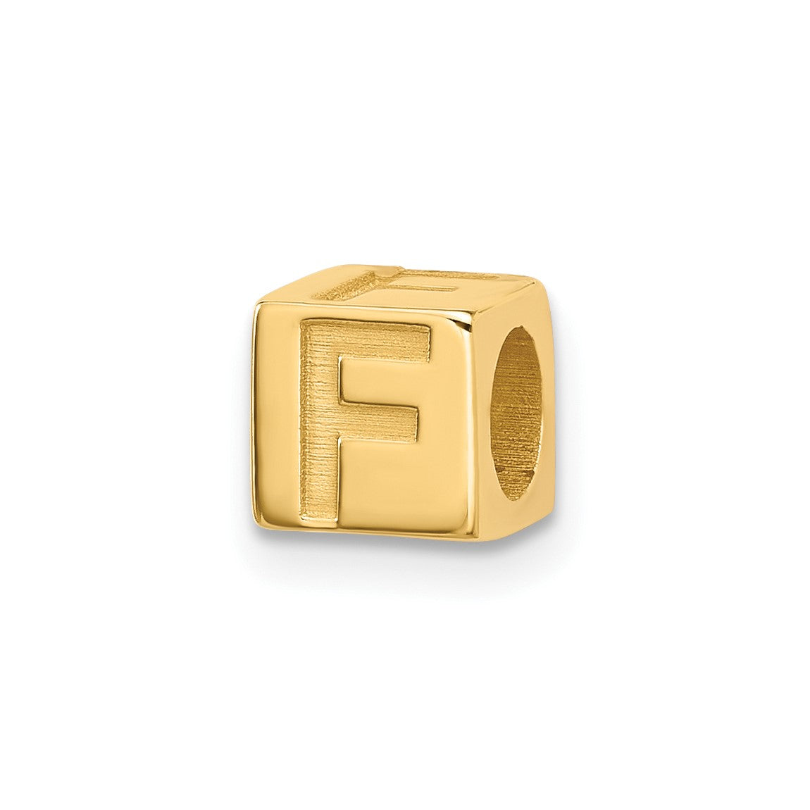 14K Yellow Gold Alphabet Bead Letter F Charm