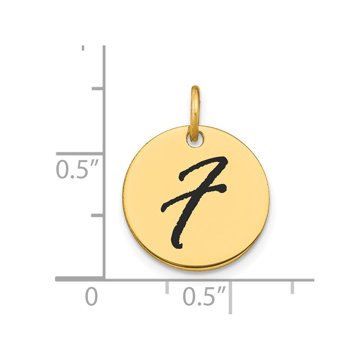 14K Yellow Gold Polished Black Enamel Letter F Initial Disk Charm