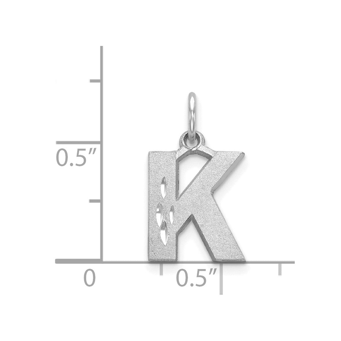 14K White Gold Solid Satin Diamond-cut Initial K Charm