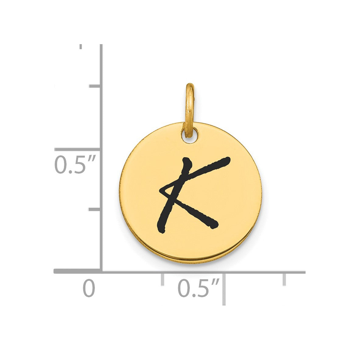 14K Yellow Gold Polished Black Enamel Letter K Initial Disk Charm