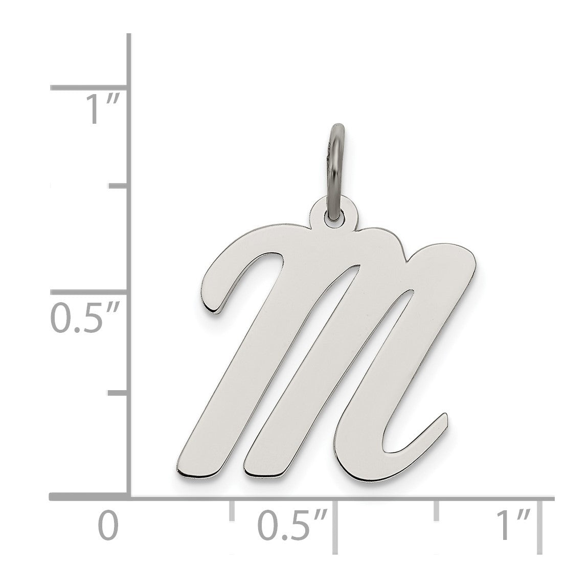 Sterling Silver Rhodium-plated Large Script Initial M Charm