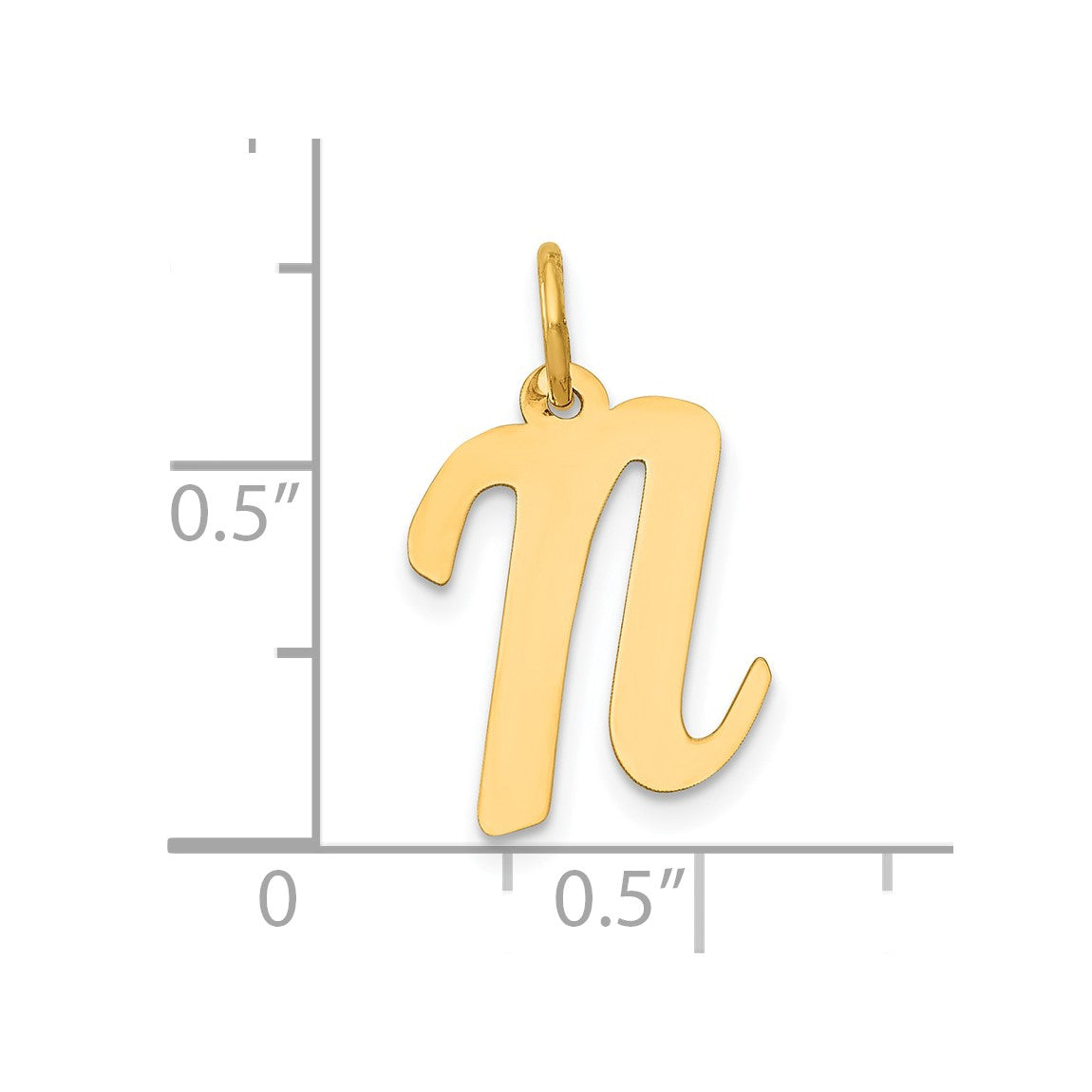 10K Yellow Gold Medium Script Letter N Initial Charm