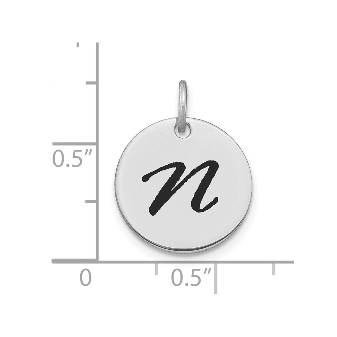 14K White Gold Polished Black Enamel Letter N Initial Disk Charm