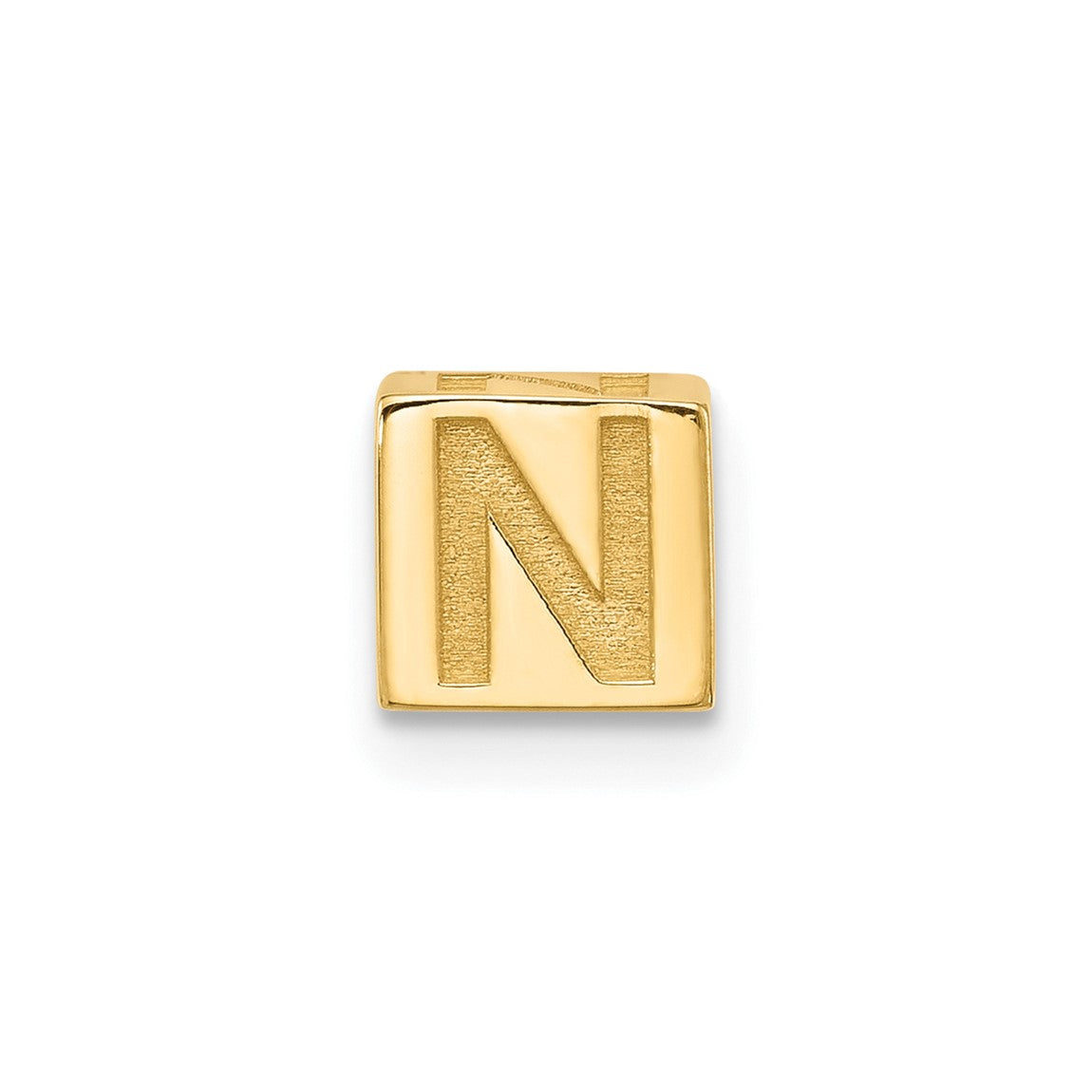 14K Yellow Gold Alphabet Bead Letter N Charm