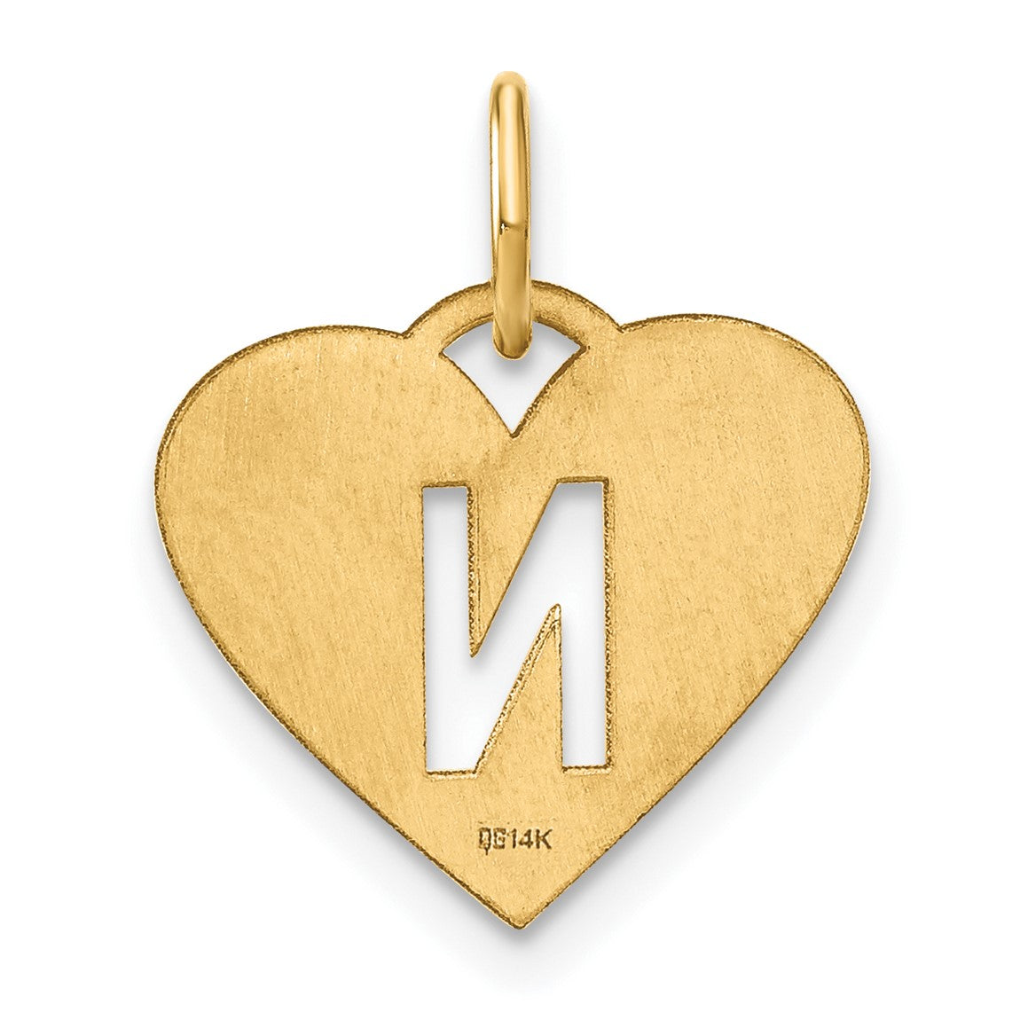 14k Yellow Gold Initial Letter N Initial Heart Charm