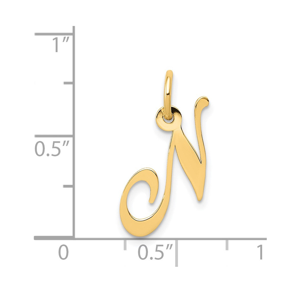 14k Yellow Gold Small Fancy Script Initial N Charm