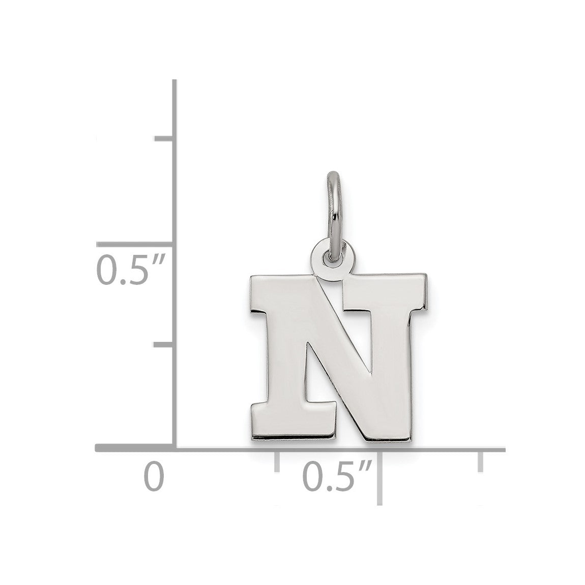 Sterling Silver Rhodium-plated Small Block Initial N Charm