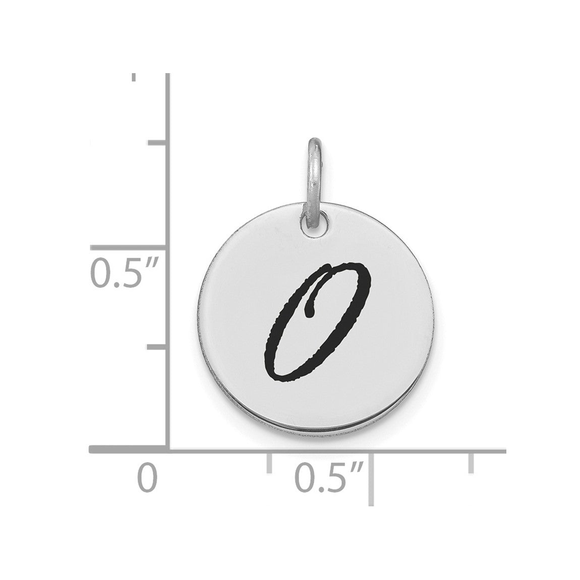 14K White Gold Polished Black Enamel Letter O Initial Disk Charm