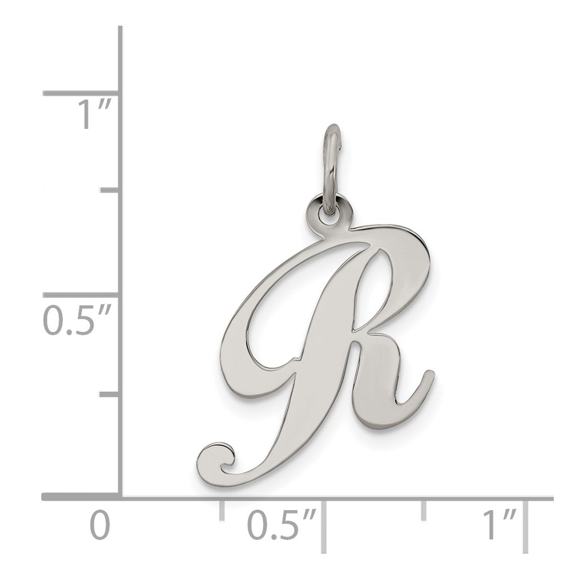 Sterling Silver Rhodium-plated Medium Fancy Script Initial R Charm