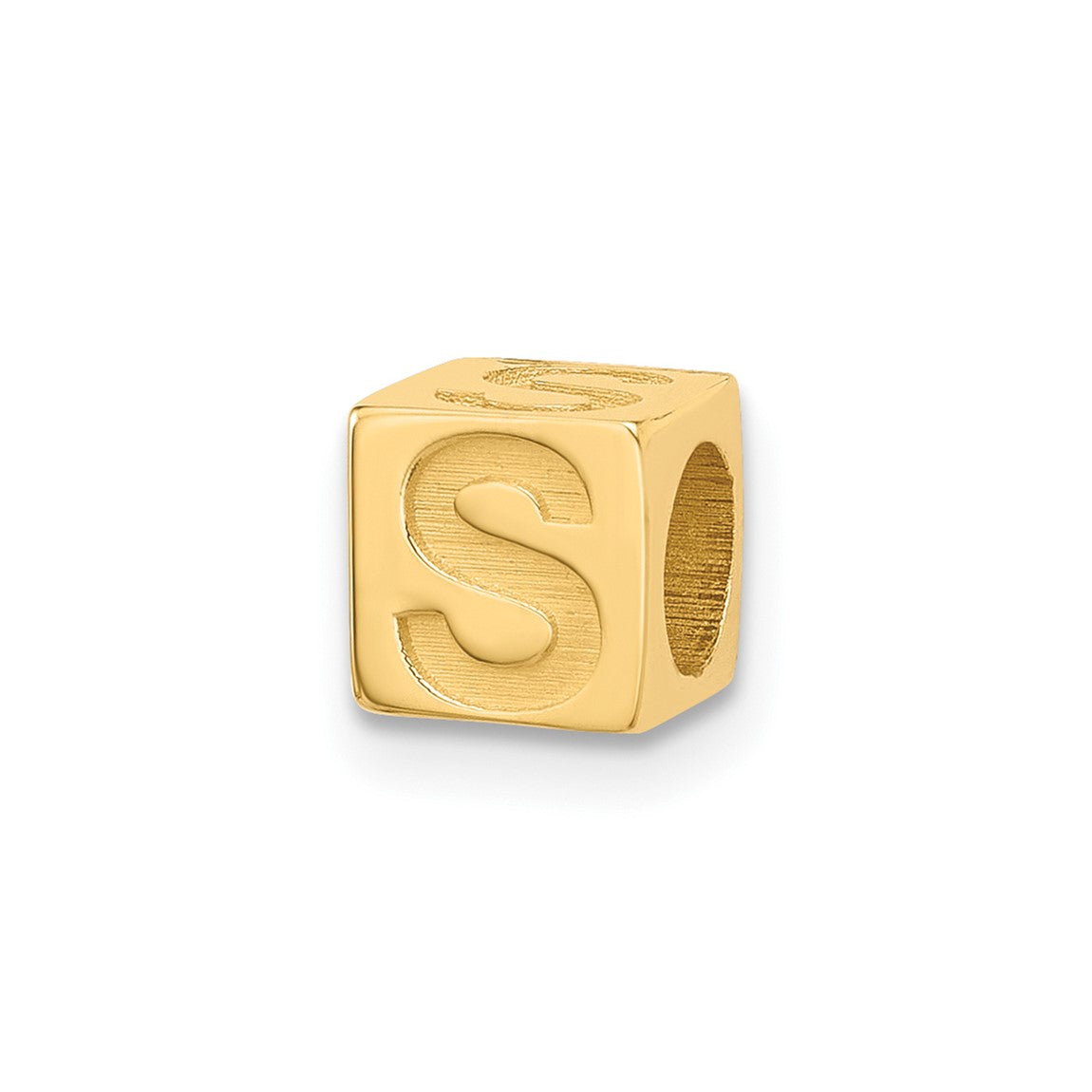 14K Yellow Gold Alphabet Bead Letter S Charm