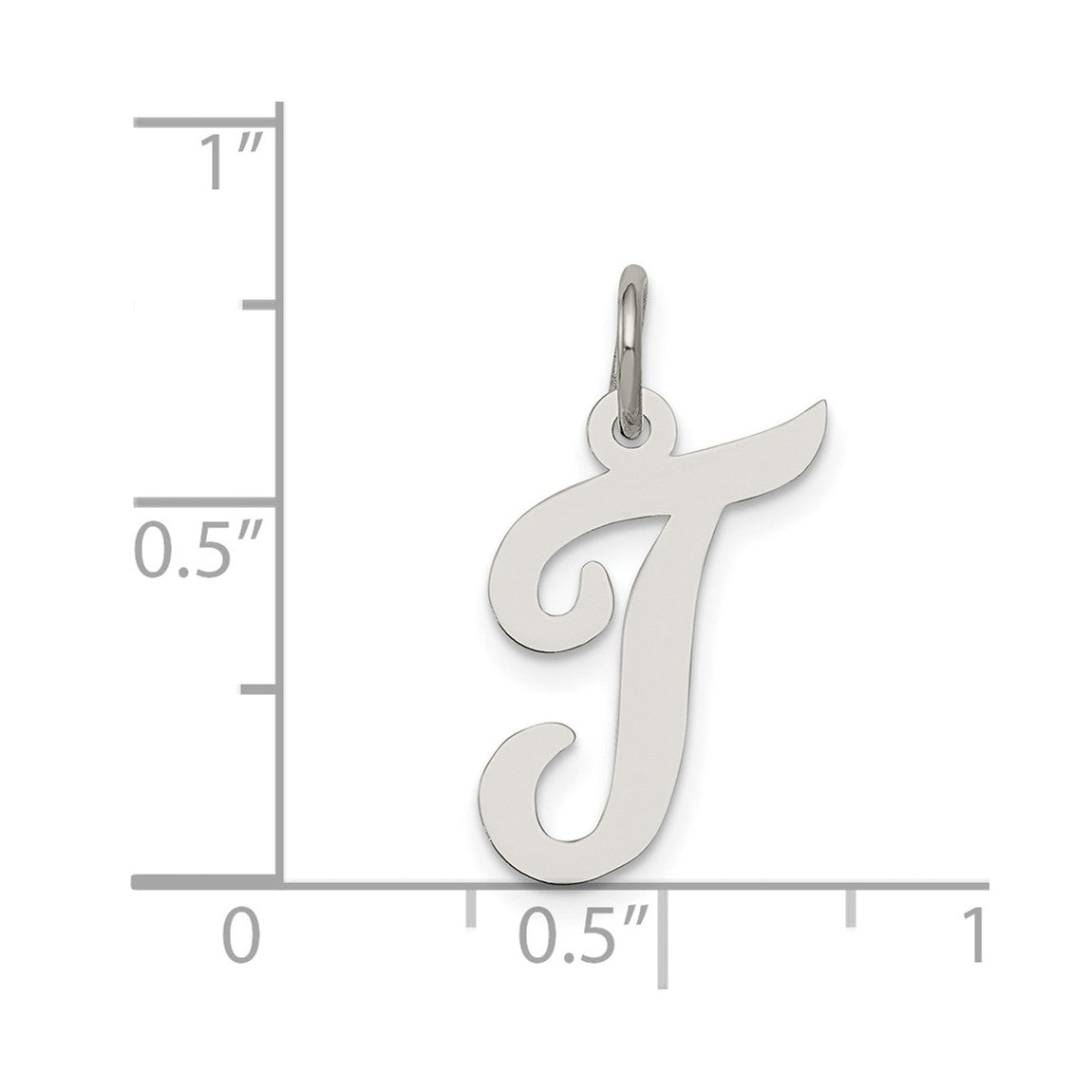 Sterling Silver Rhodium-plated Medium Script Initial T Charm
