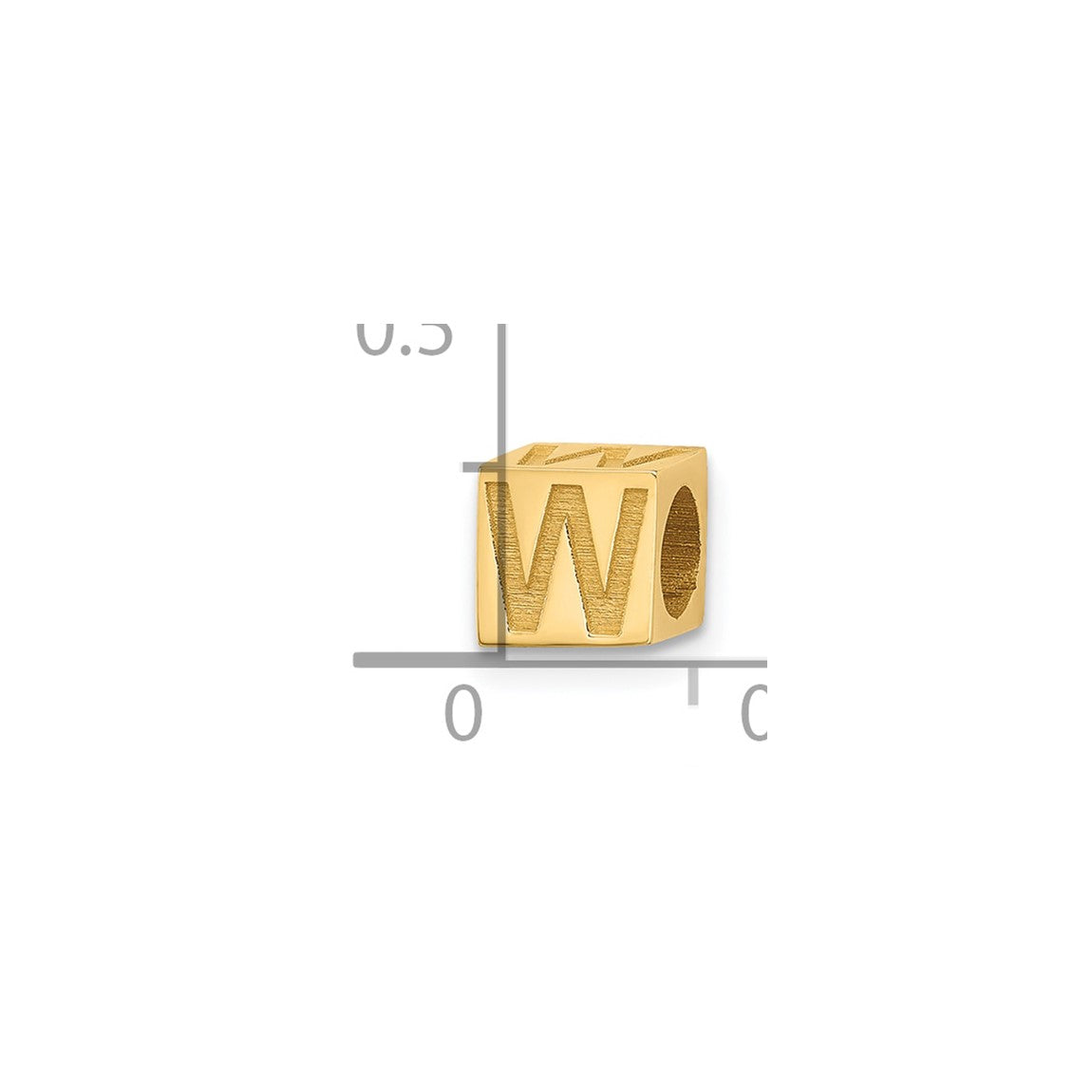 14K Yellow Gold Alphabet Bead Letter W Charm