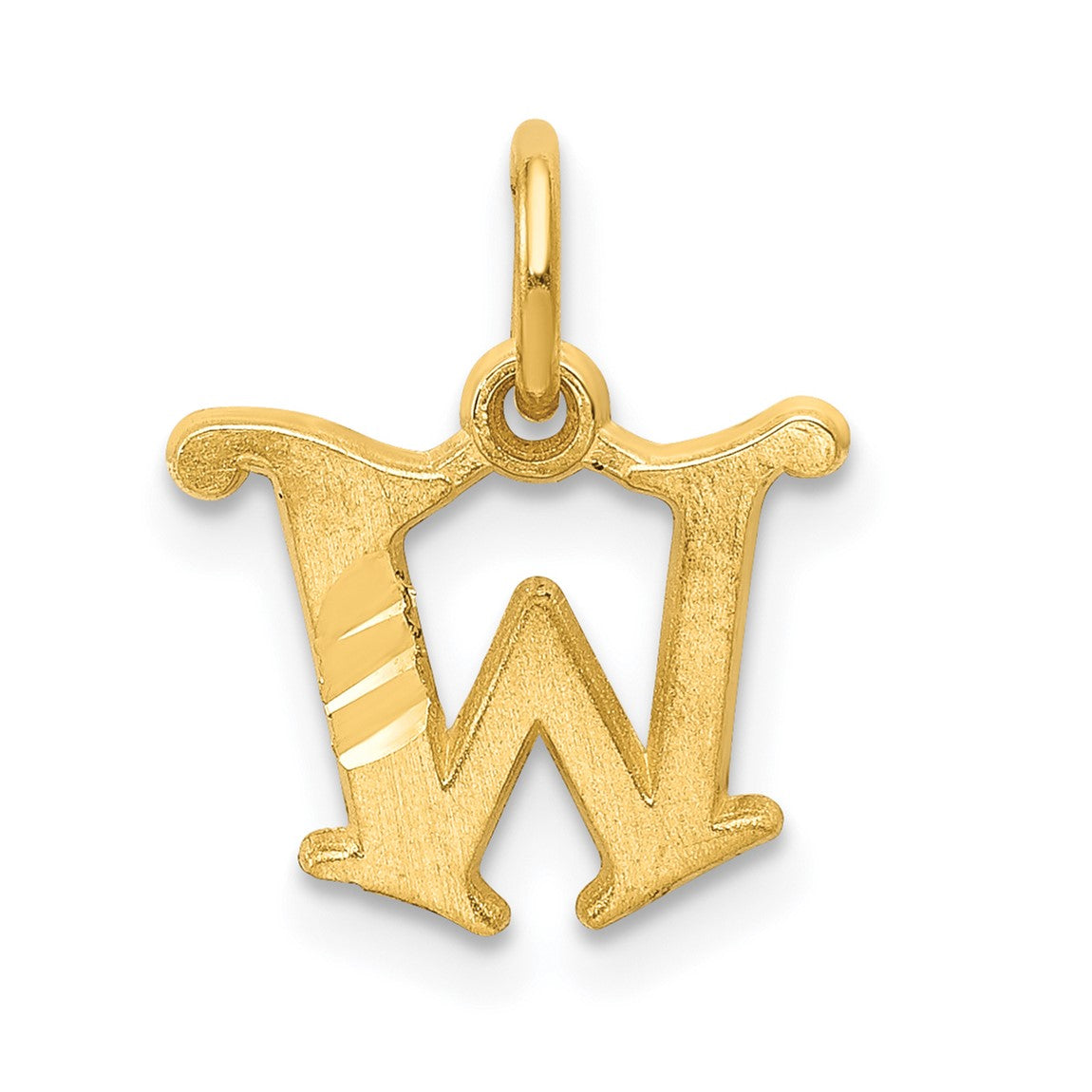 14k Yellow Gold Solid Satin Diamond-Cut Fancy Initial W Charm