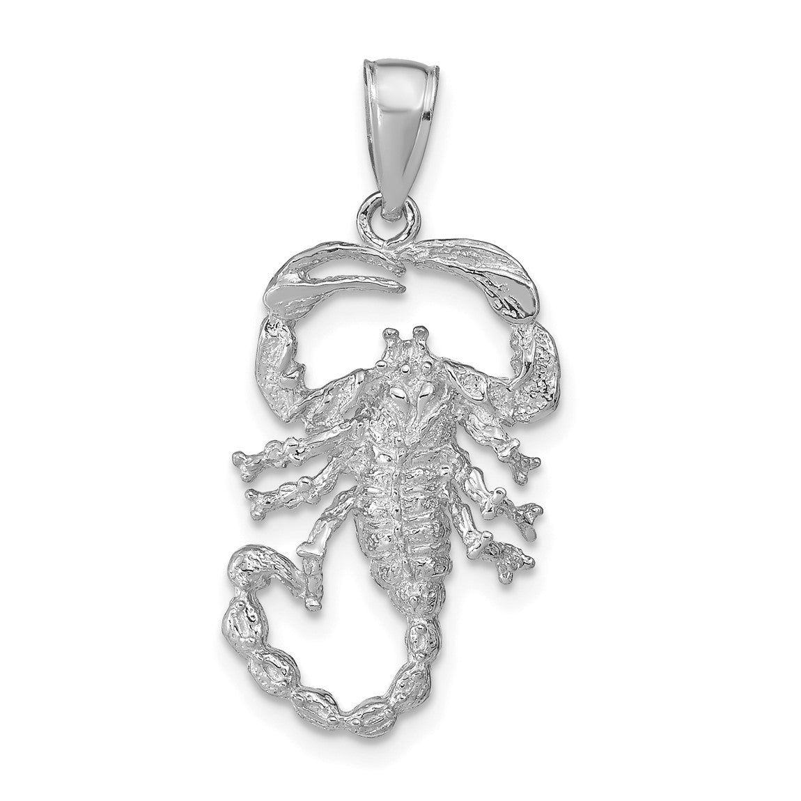 14K White Gold Solid Polished Open-Backed Scorpion Pendant