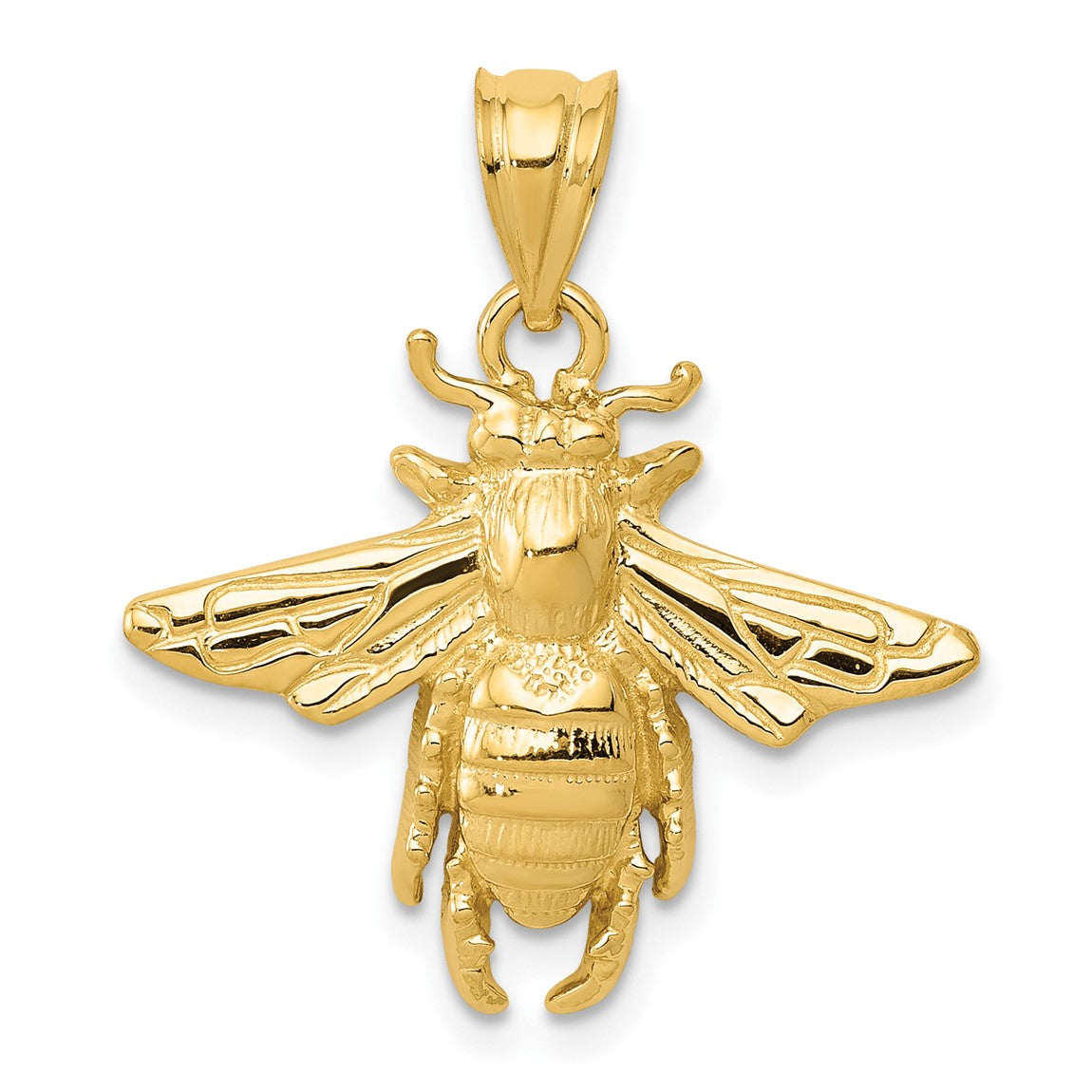 14k Yellow Gold Solid Open-Backed Bee Pendant