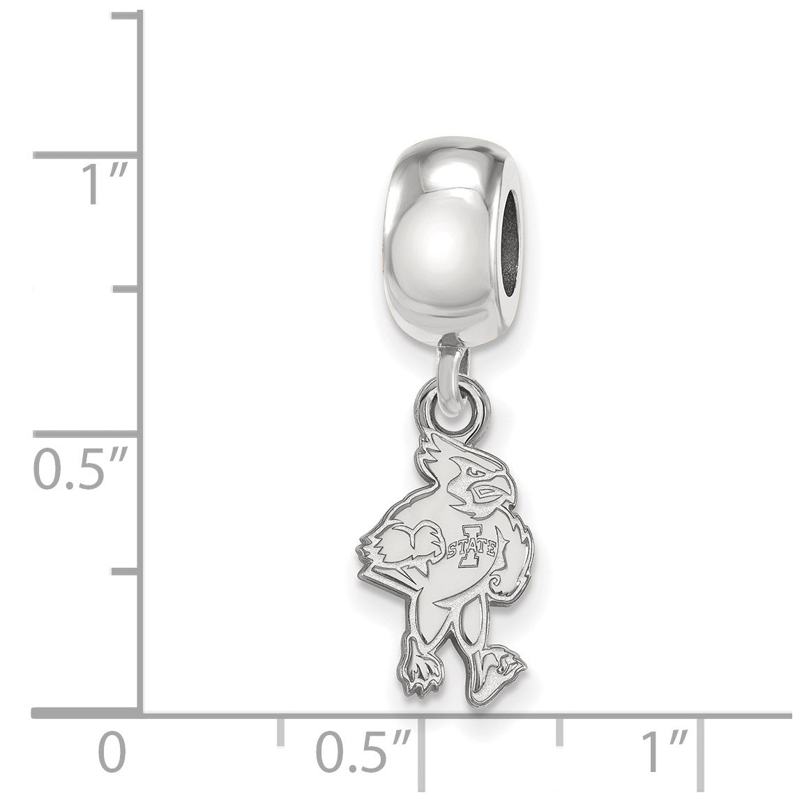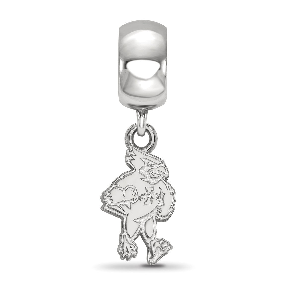 Sterling Silver Rhodium-plated LogoArt Iowa State University Cardinal Small Dangle Bead Charm