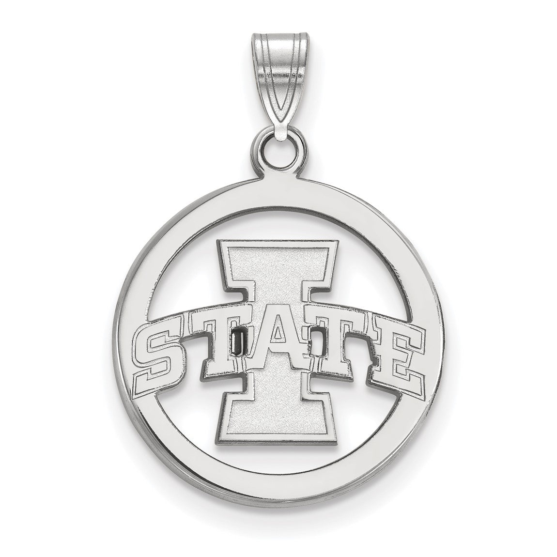 Sterling Silver Rhodium-plated LogoArt Iowa State University Medium Circle Pendant