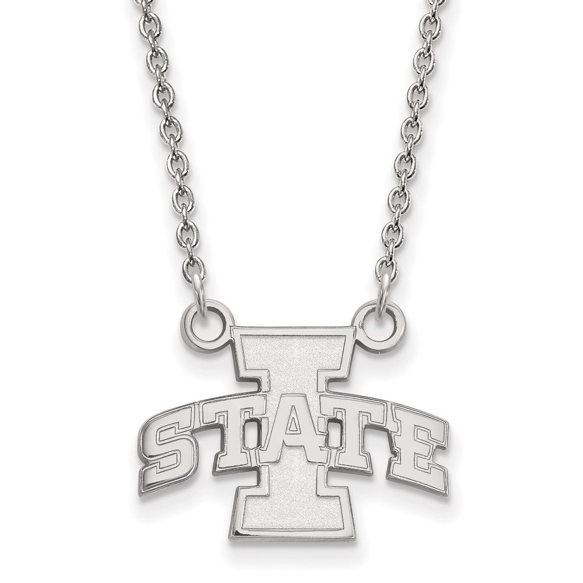 Sterling Silver Rhodium-plated LogoArt Iowa State University Small Pendant 18 inch Necklace