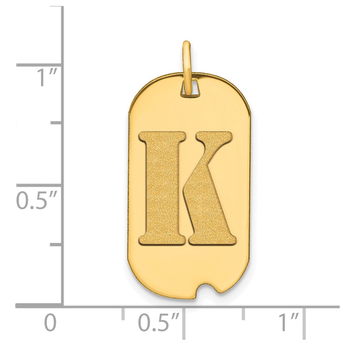 14k Yellow Gold Polished Letter K Initial Dog Tag Pendant
