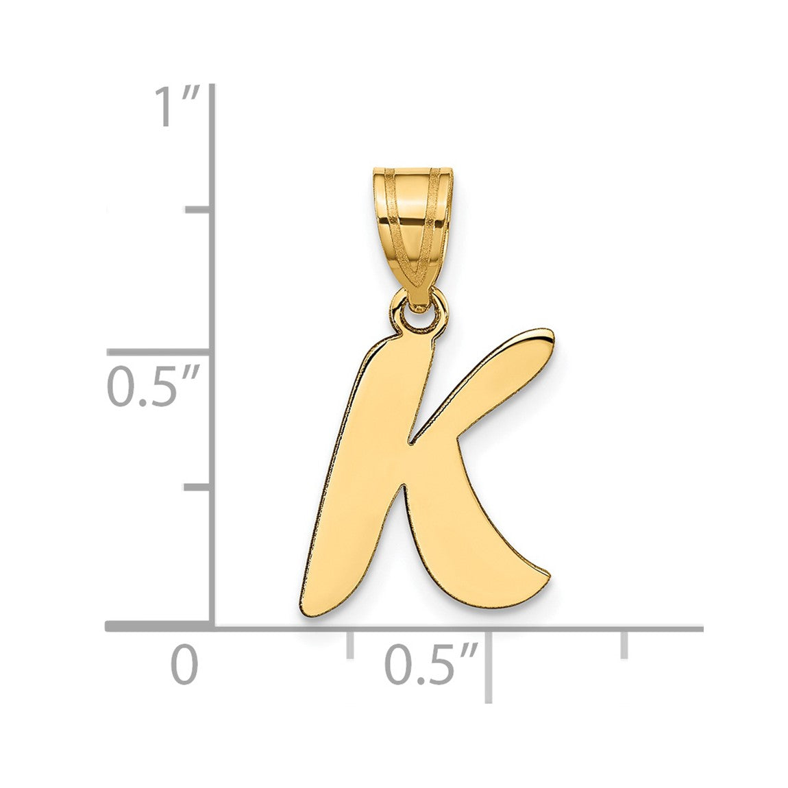 14k Yellow Gold Polished Script Letter K Initial Pendant