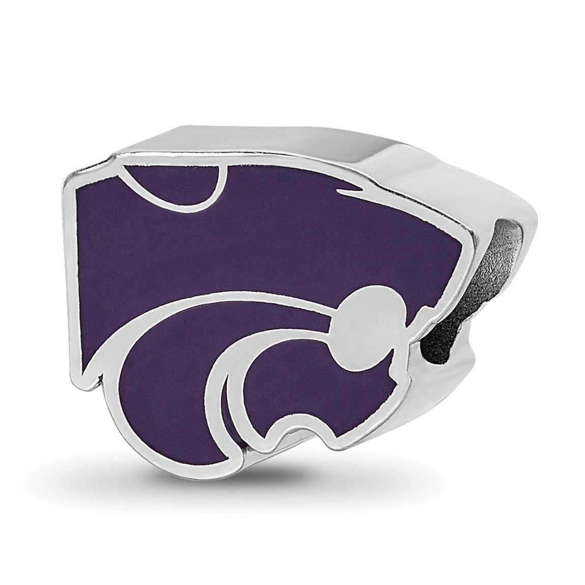 Sterling Silver Rhodium-plated LogoArt Kansas State University Wildcat Enameled Logo Bead