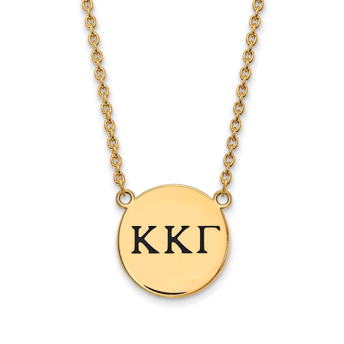 Sterling Silver Gold-plated LogoArt Kappa Kappa Gamma Sorority Greek Letters Large Black Enamel Pendant 18 inch Necklace
