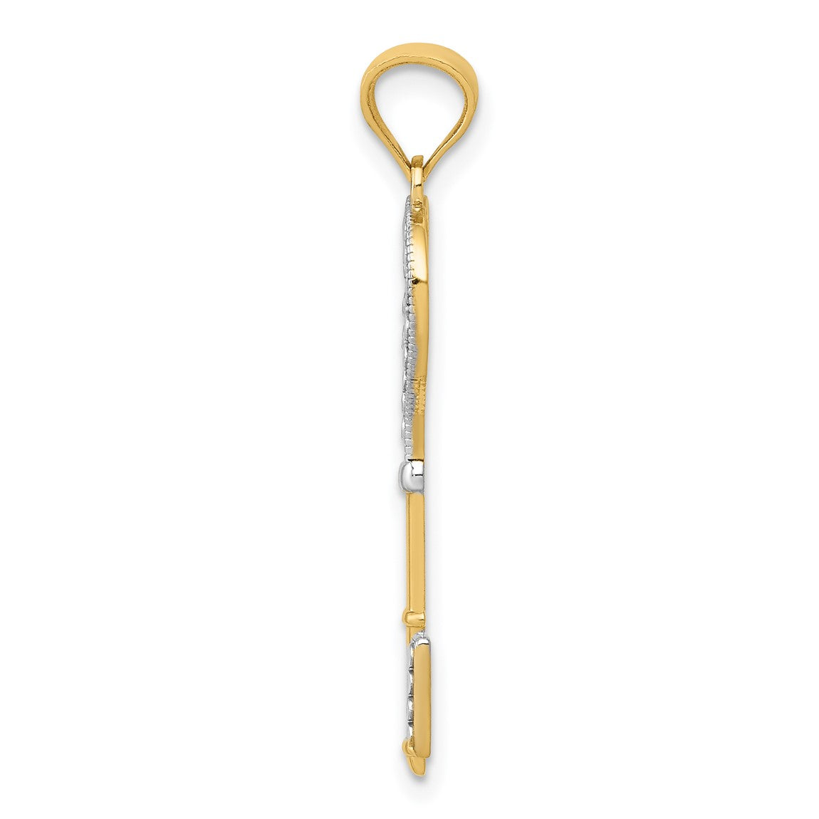 14k Yellow Gold and White Rhodium Polished Heart Key Pendant YC1031