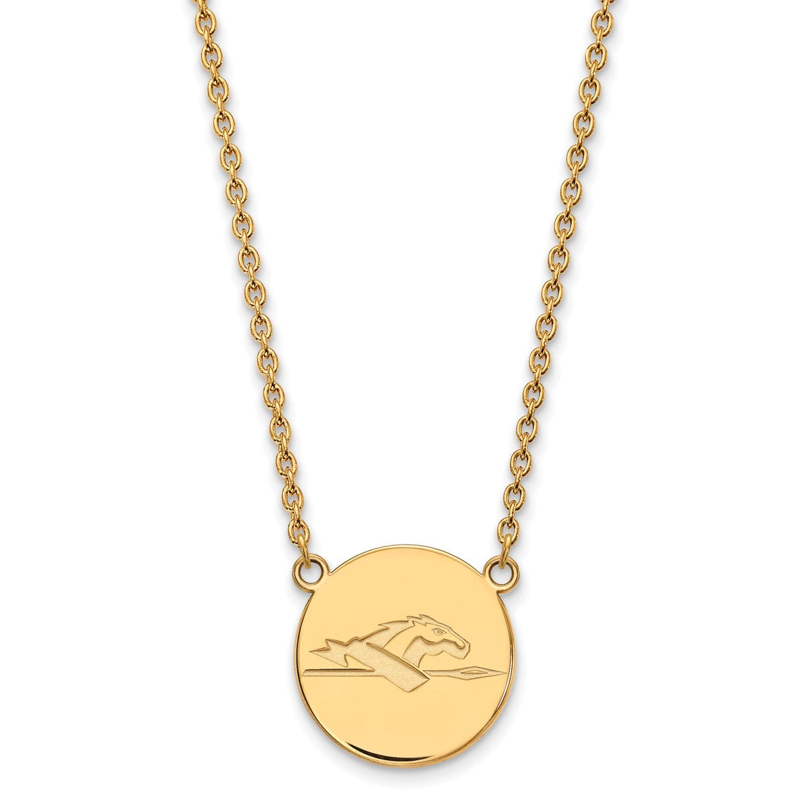Sterling Silver Gold-plated LogoArt Longwood University Horse Large Disc Pendant 18 inch Necklace