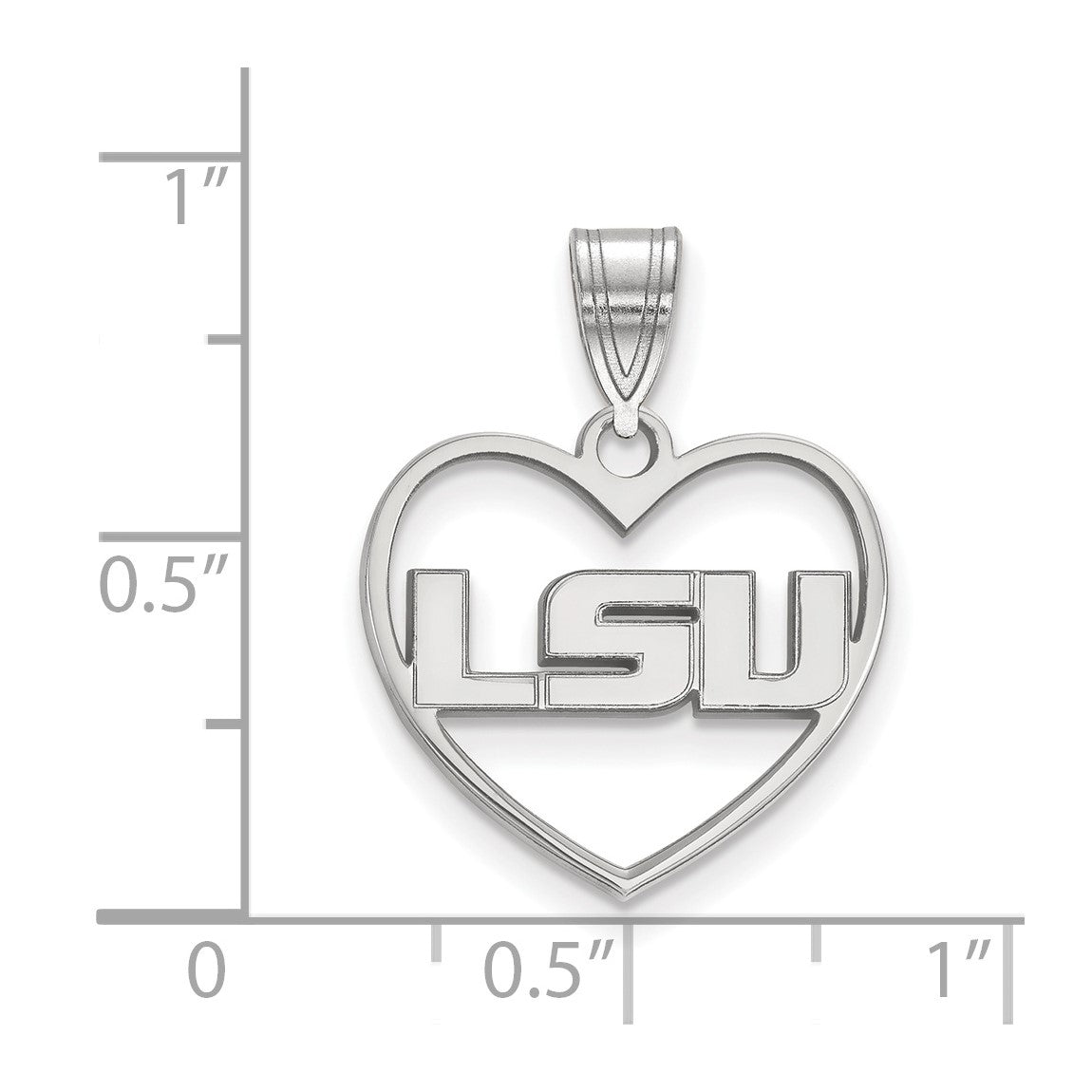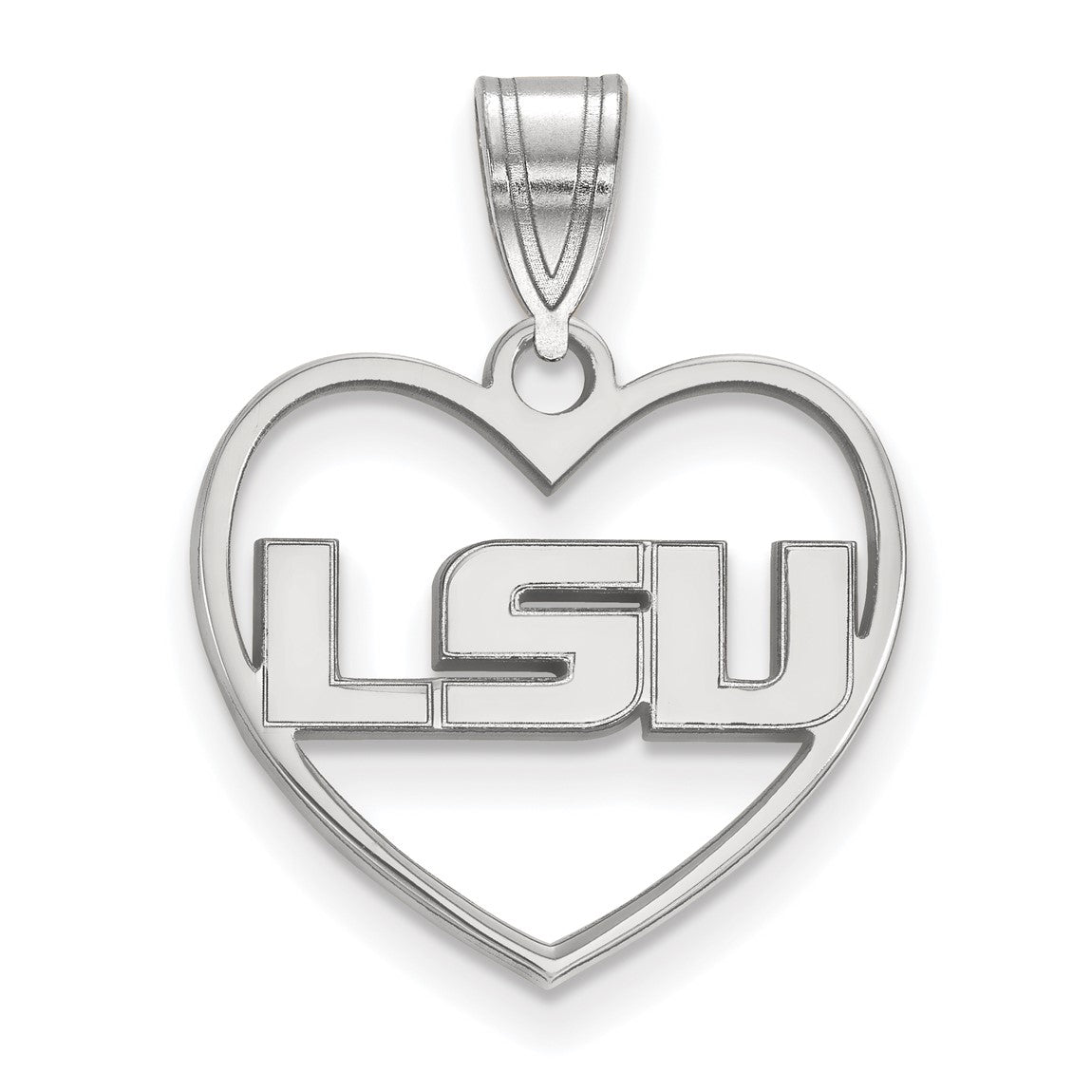 Sterling Silver Rhodium-plated LogoArt Louisiana State University L-S-U Heart Pendant