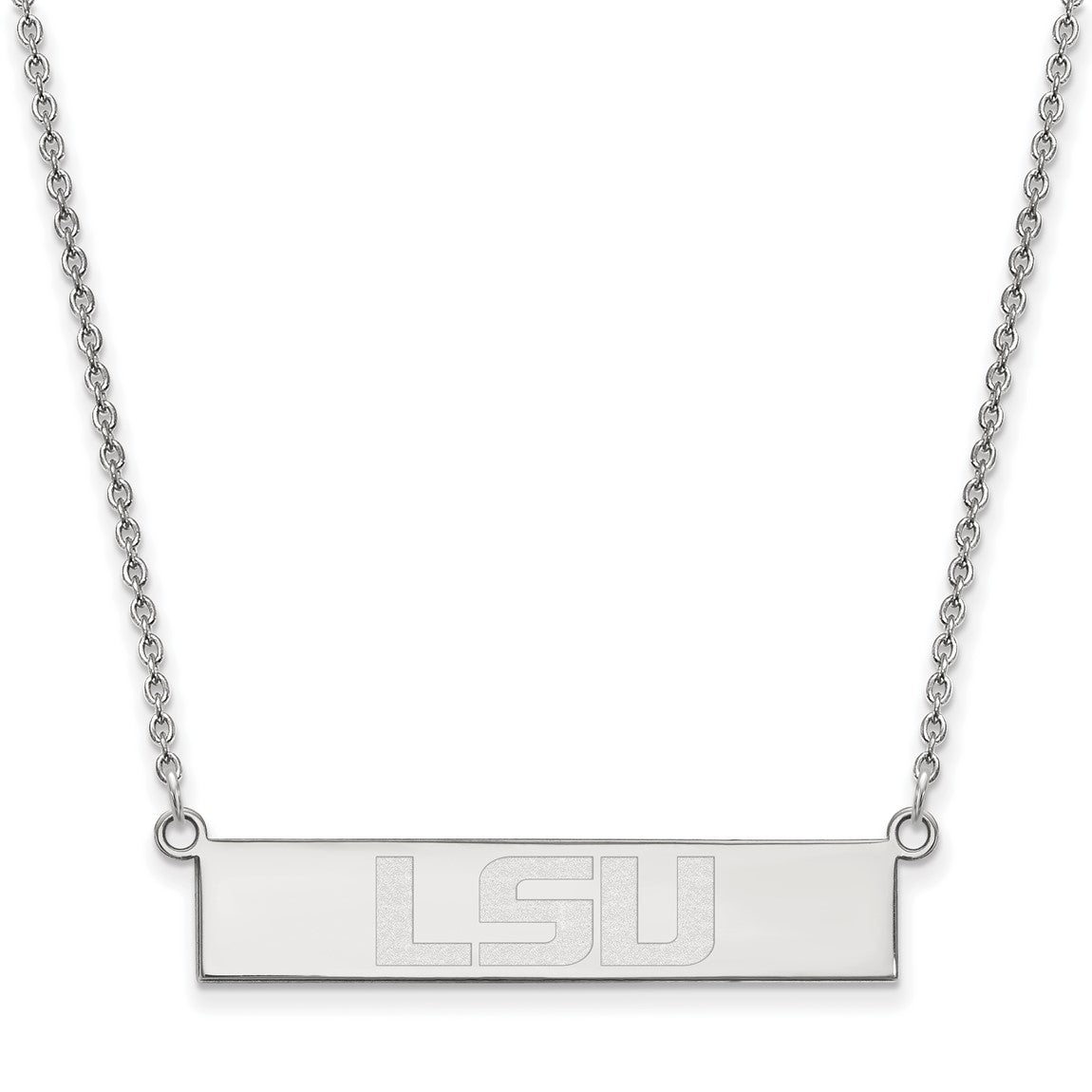 Sterling Silver Rhodium-plated LogoArt Louisiana State University L-S-U Small Bar 18 inch Necklace