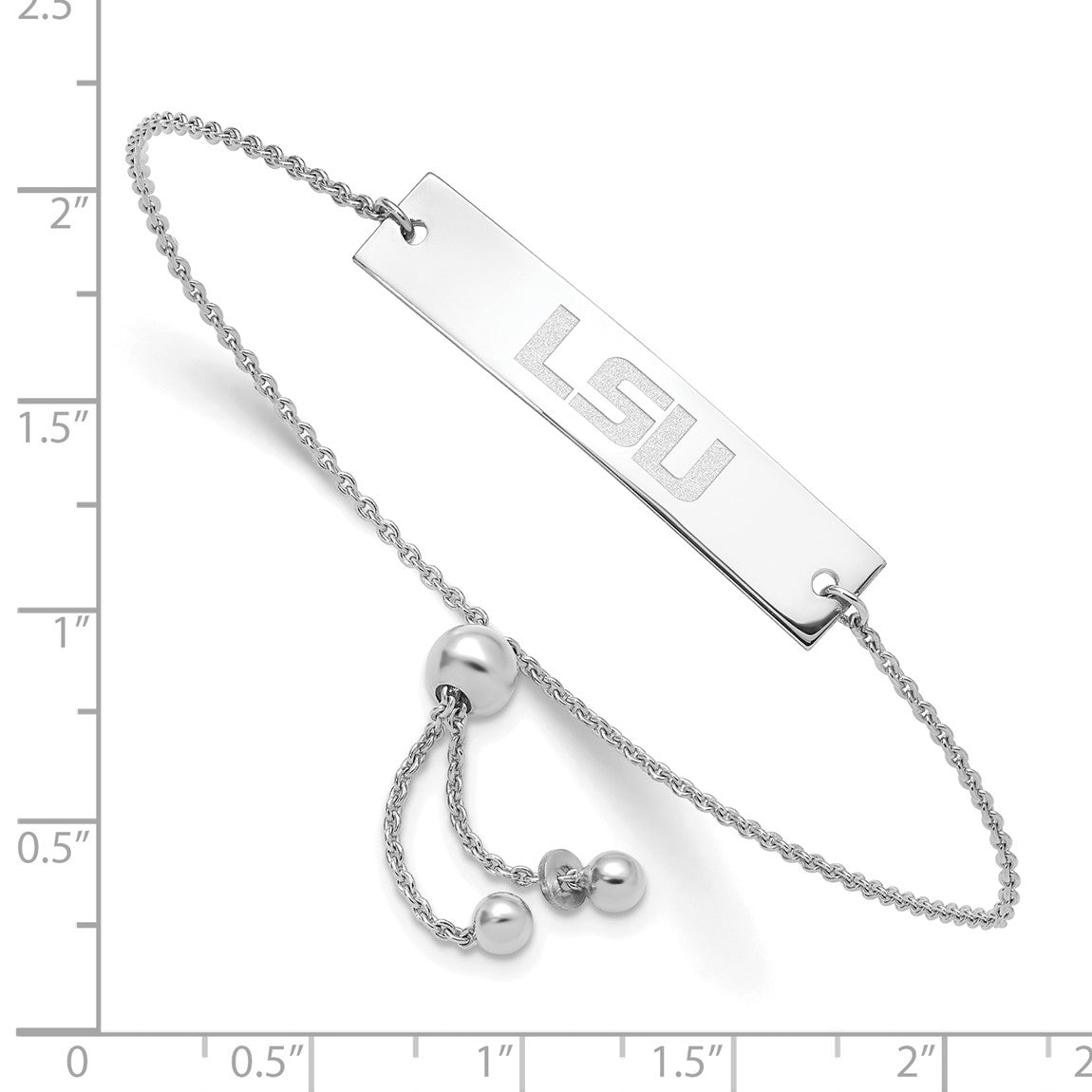 Sterling Silver Rhodium-plated LogoArt Louisiana State University L-S-U Small Bar Adjustable 9 inch Bracelet
