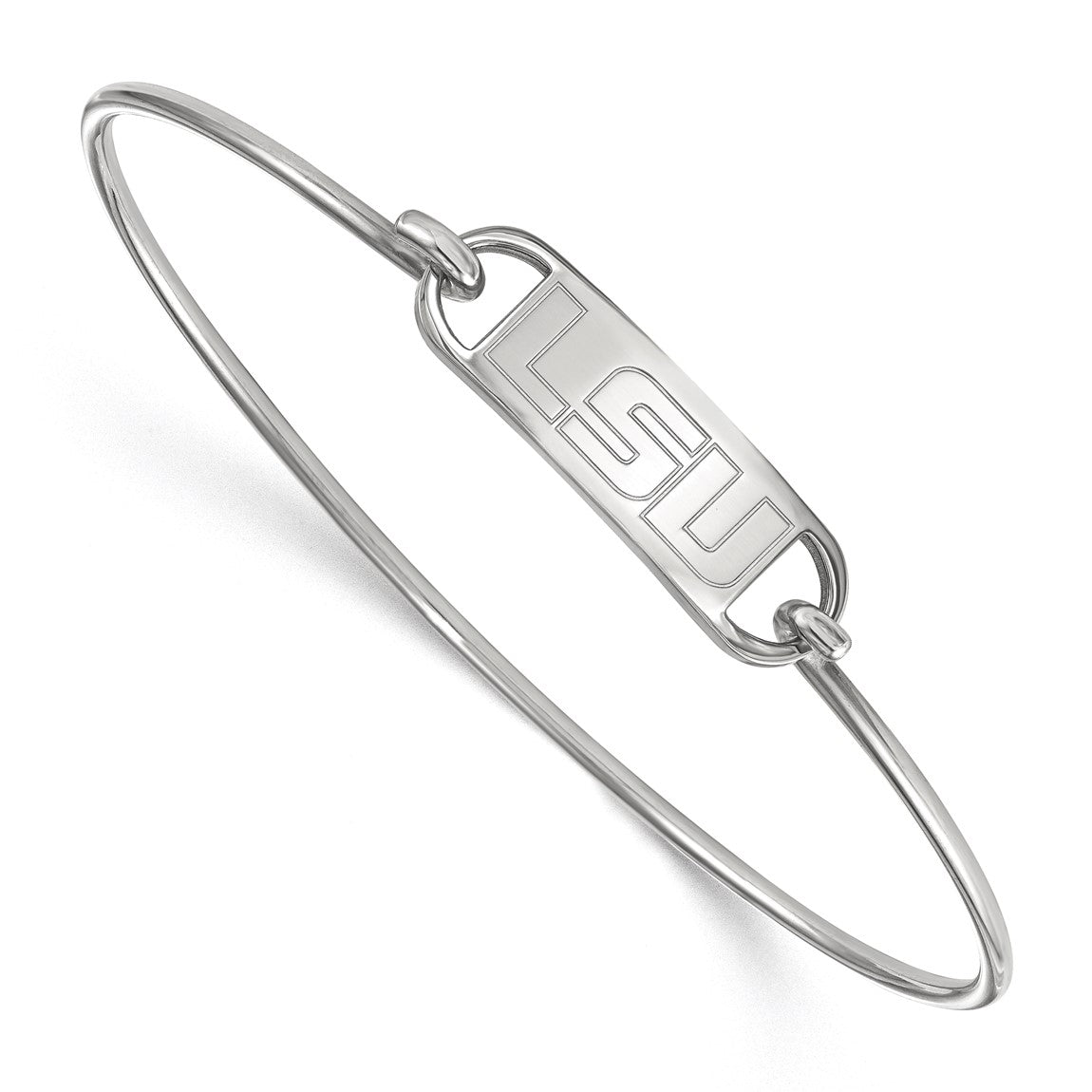Sterling Silver Rhodium-plated LogoArt Louisiana State University L-S-U Small Center 7 inch Wire Bangle Bracelet