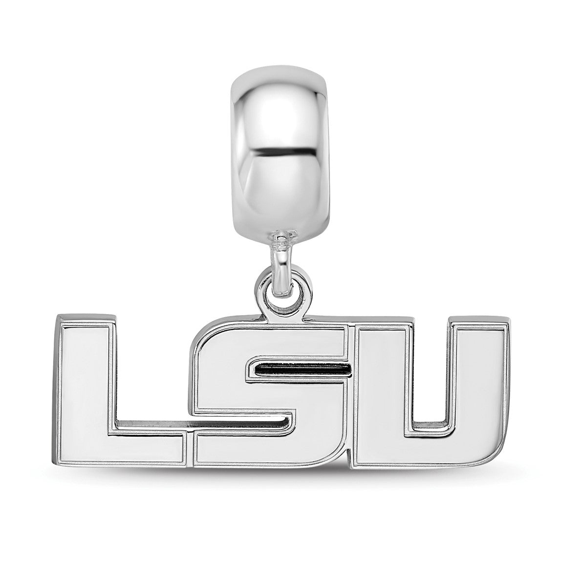Sterling Silver Rhodium-plated LogoArt Louisiana State University L-S-U Small Dangle Bead Charm