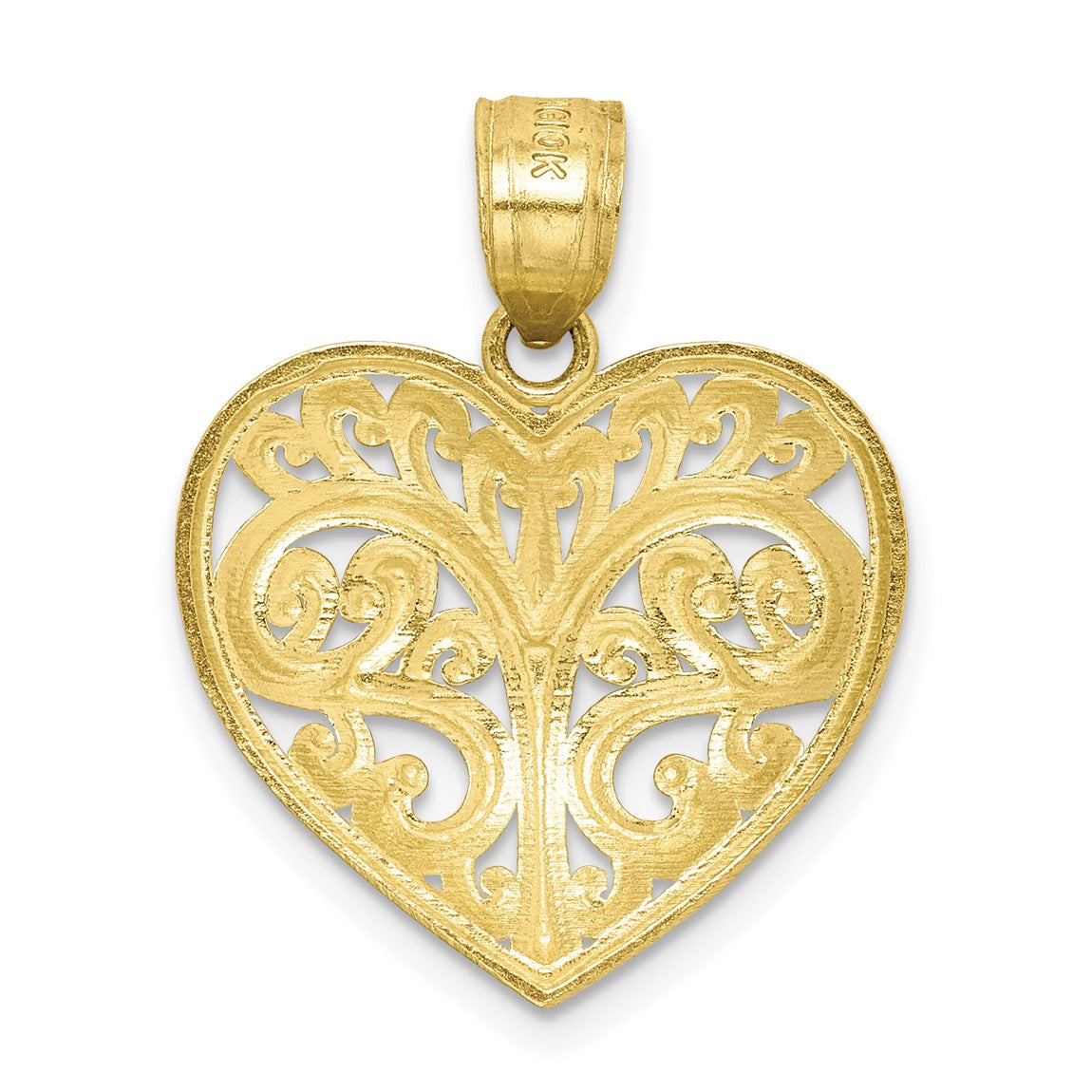 10k Yellow Gold Diamond-Cut Filigree Heart Pendant