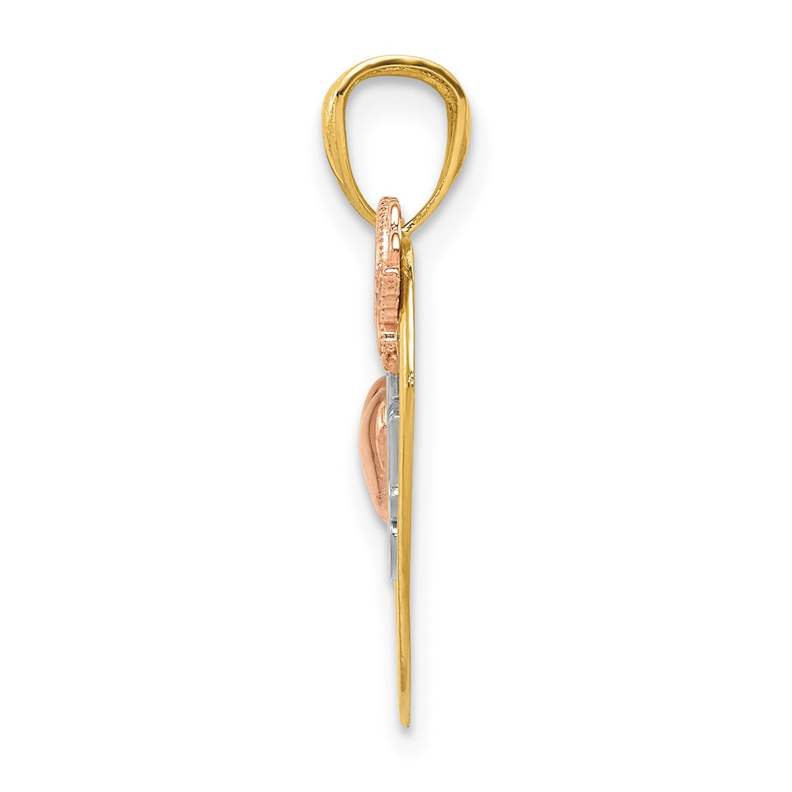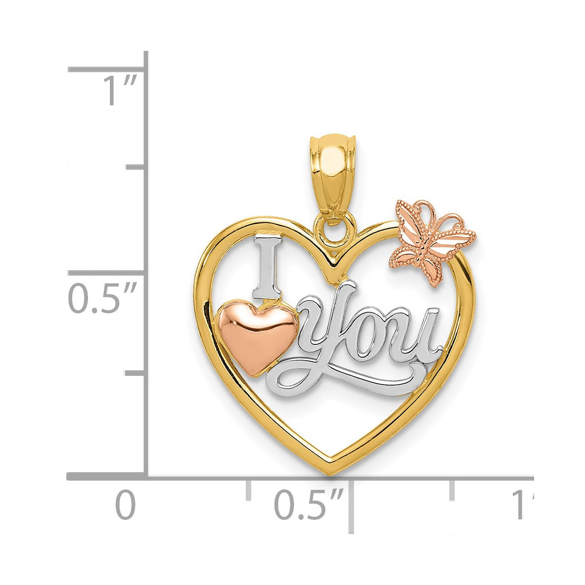 14k Yellow and Rose Gold Polished I Love You In Heart w/ Butterfly Pendant