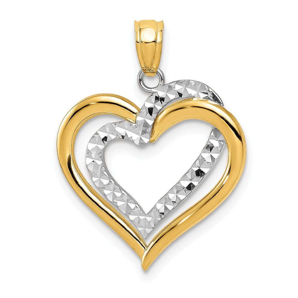 14k Yellow and White Gold Diamond-cut Double Heart Pendant