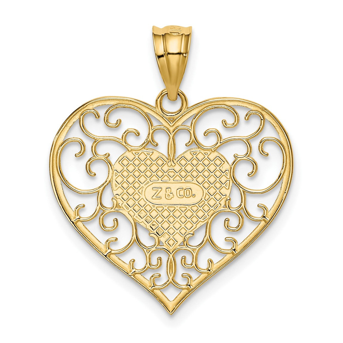 14k Yellow Gold Heart In Heart Polished and Filigree Pendant