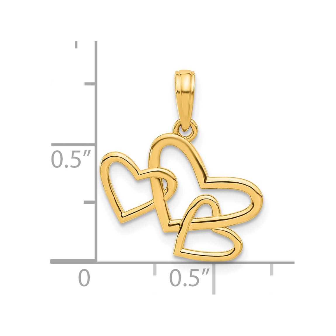 14K Yellow Gold Polished Triple Heart Pendant D5419