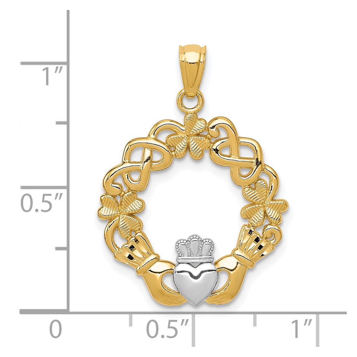 14k Yellow Gold Rhodium Claddagh Pendant C3036