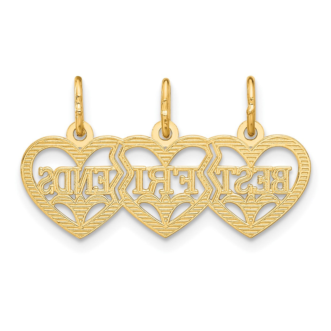 14k Yellow Gold Triple Heart Diamond-Cut Best Friends Break-Apart Pendant