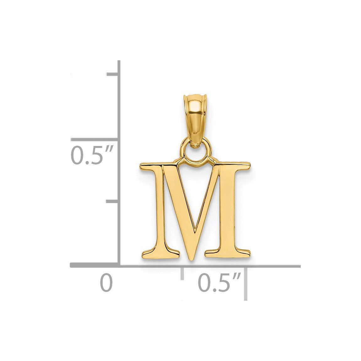 14k Yellow Gold Polished M Block Initial Pendant