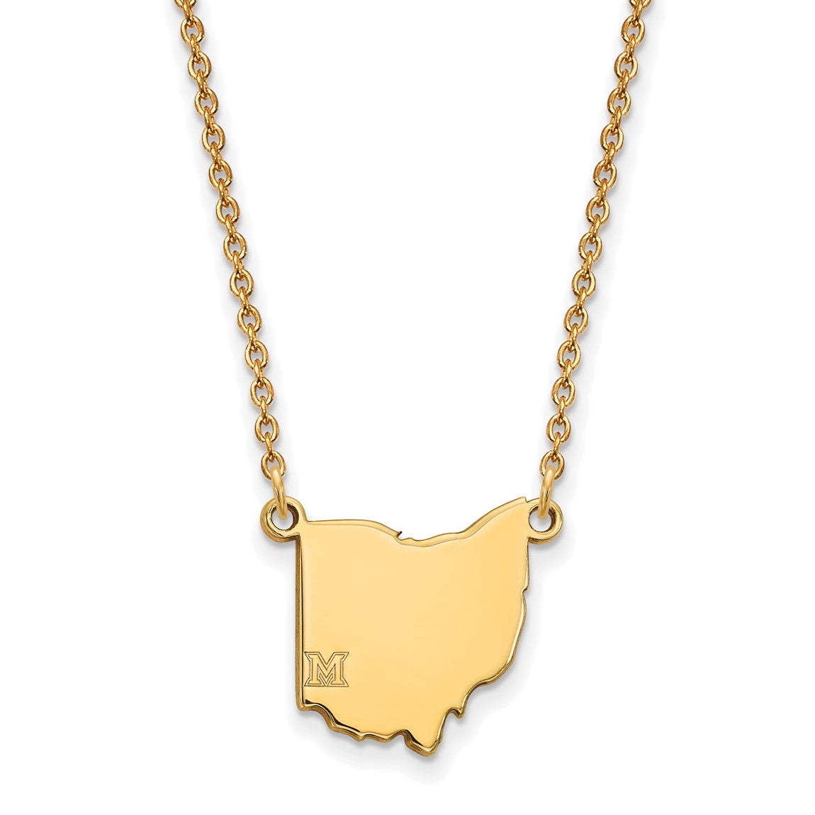 14k Gold LogoArt Miami University Ohio Shape 18 inch Necklace