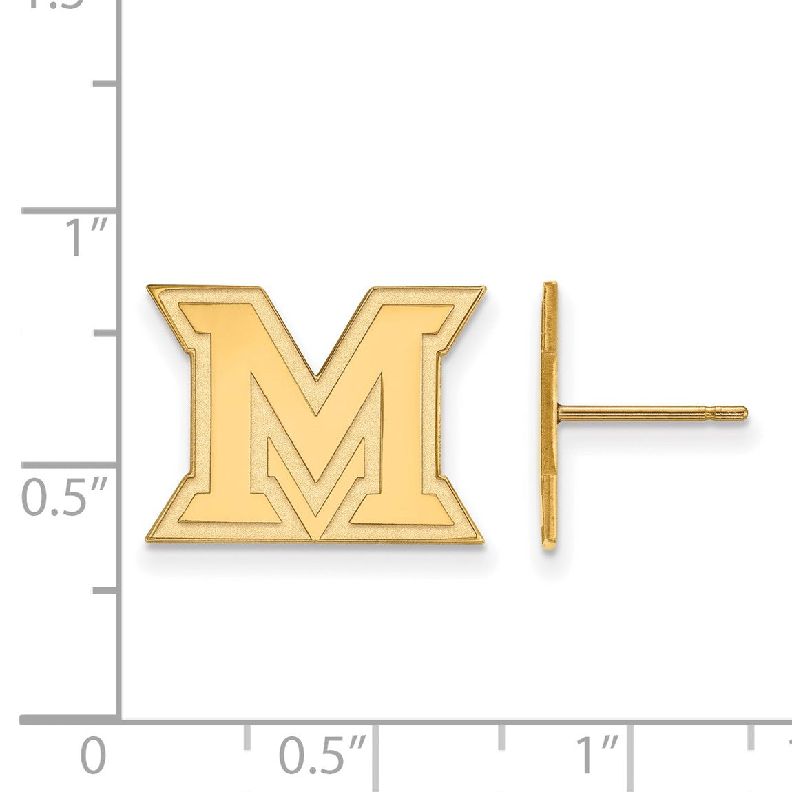 Sterling Silver Gold-plated LogoArt Miami University Ohio Letter M Small Post Earrings