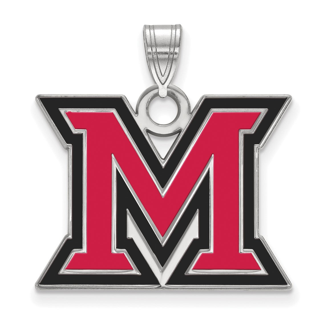 Sterling Silver Rhodium-plated LogoArt Miami University Ohio Letter M Large Enameled Pendant