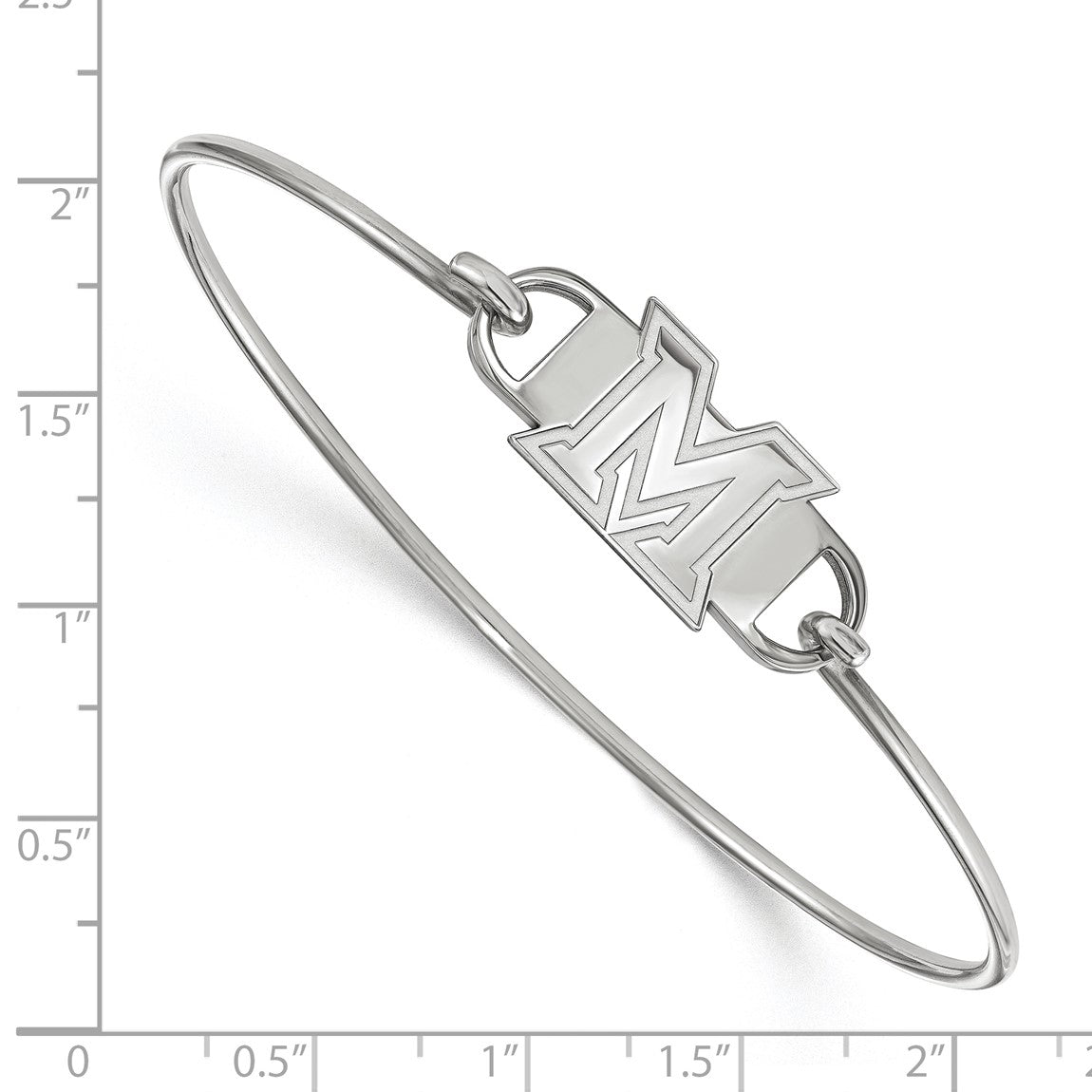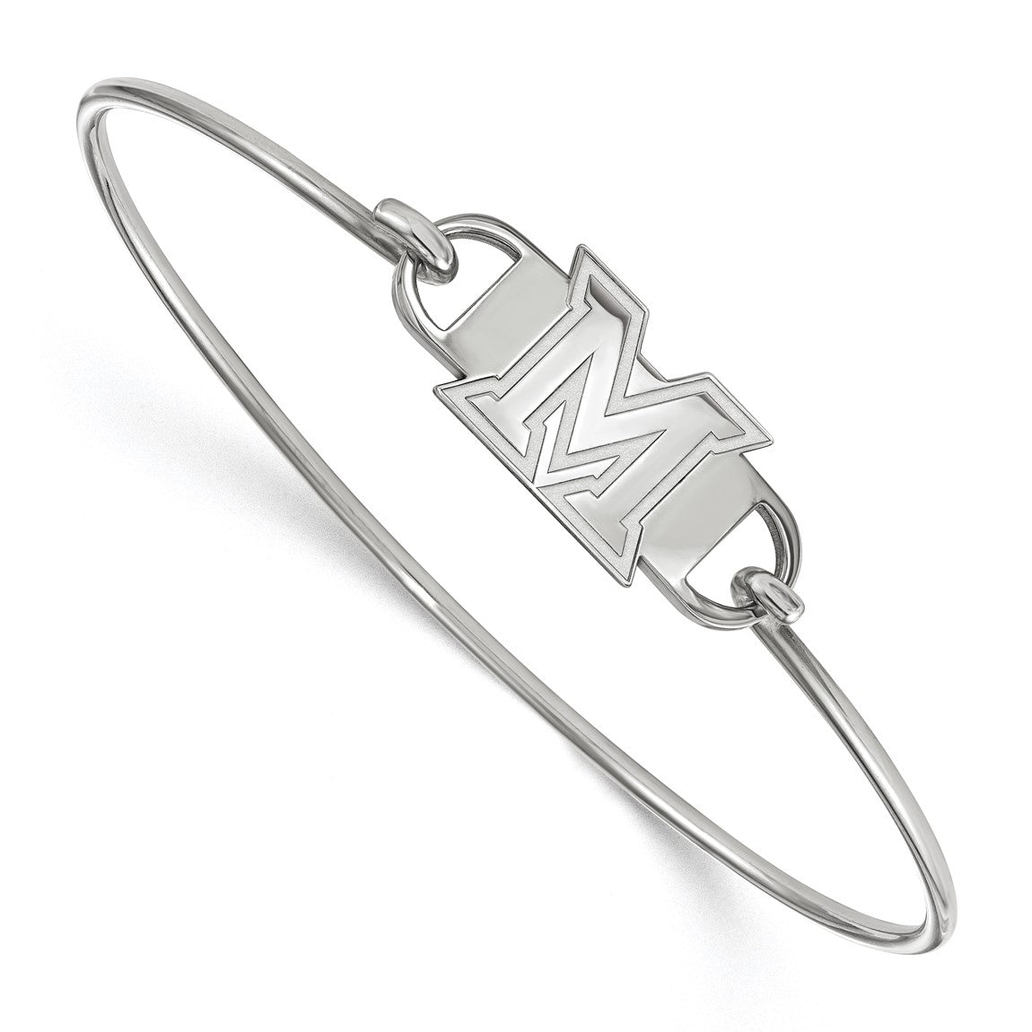 Sterling Silver Rhodium-plated LogoArt Miami University Ohio Letter M Small Center 7 inch Wire Bangle Bracelet