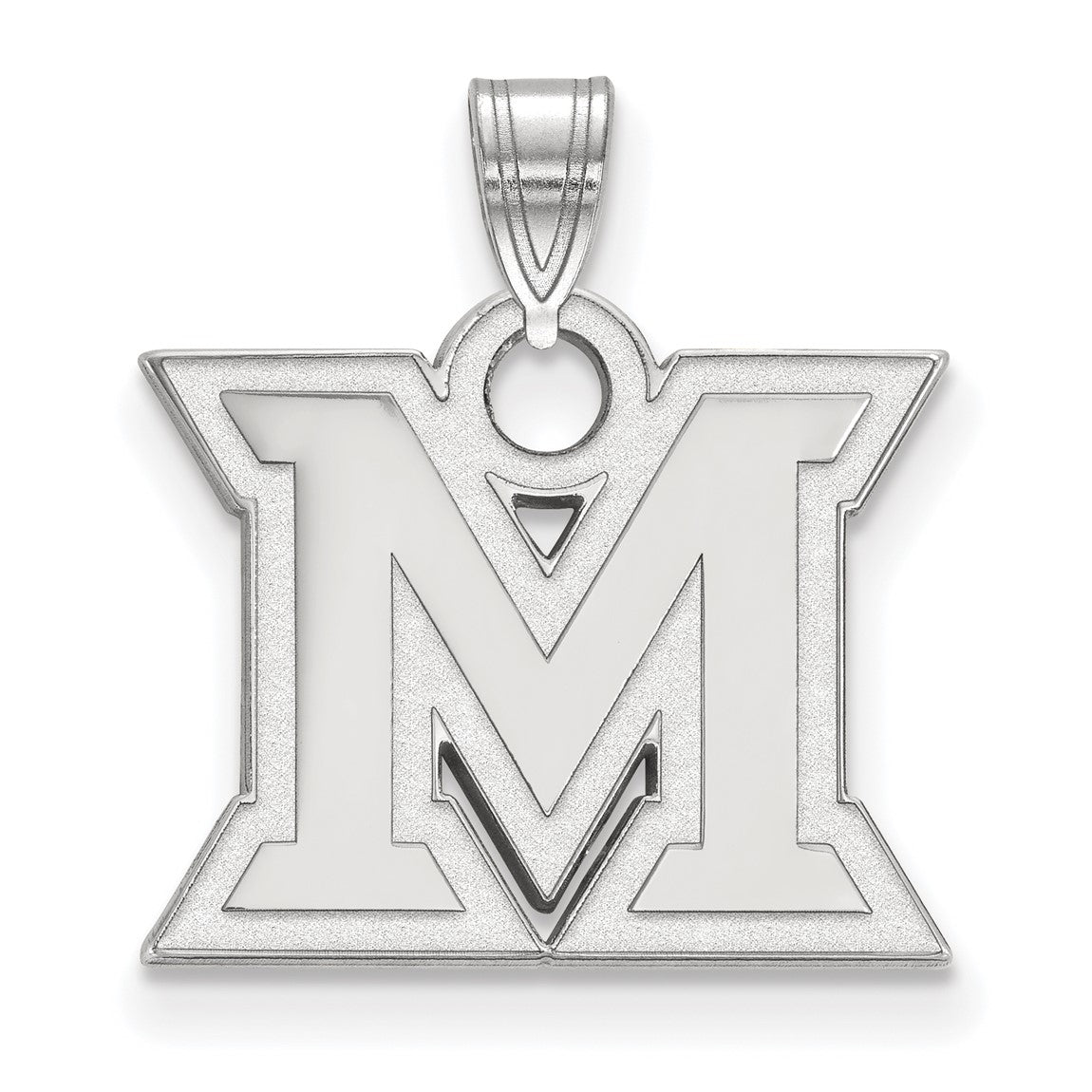 Sterling Silver Rhodium-plated LogoArt Miami University Ohio Letter M Small Pendant