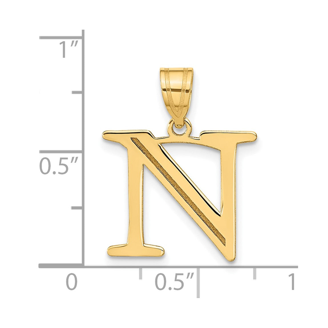 10K Yellow Gold Polished Etched Letter N Initial Pendant