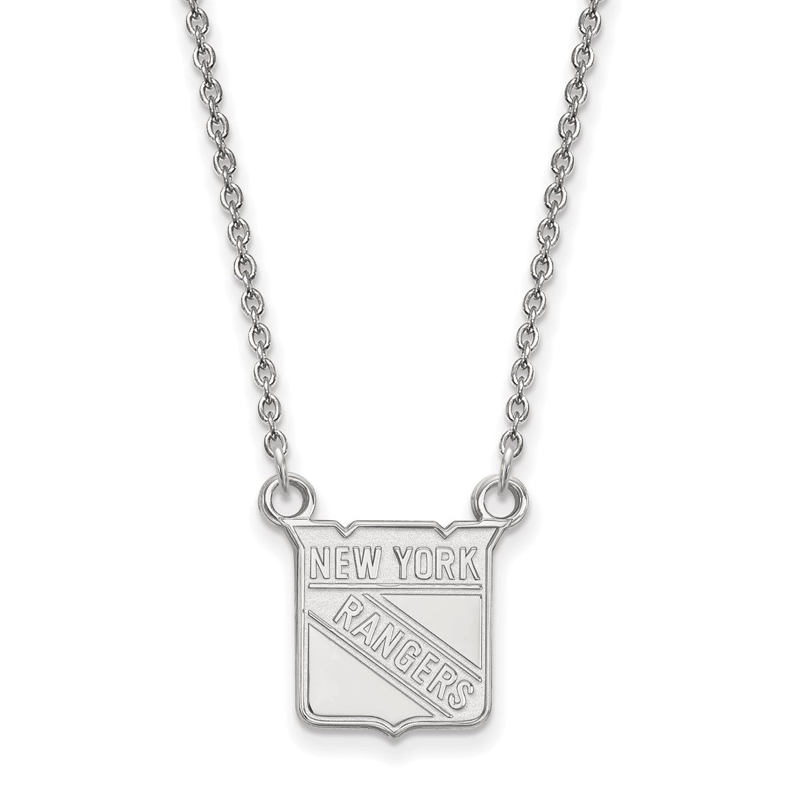 10k White Gold NHL LogoArt New York Rangers Small Pendant 18 inch Necklace