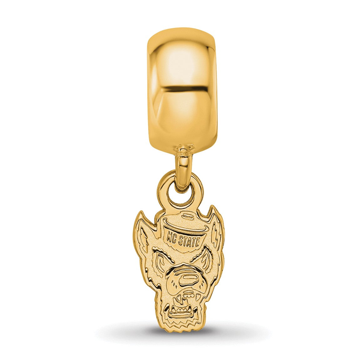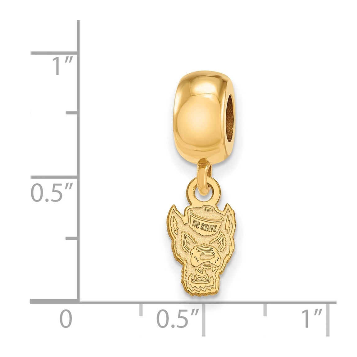 Sterling Silver Gold-plated LogoArt North Carolina State University Wolf Extra Small Dangle Bead Charm