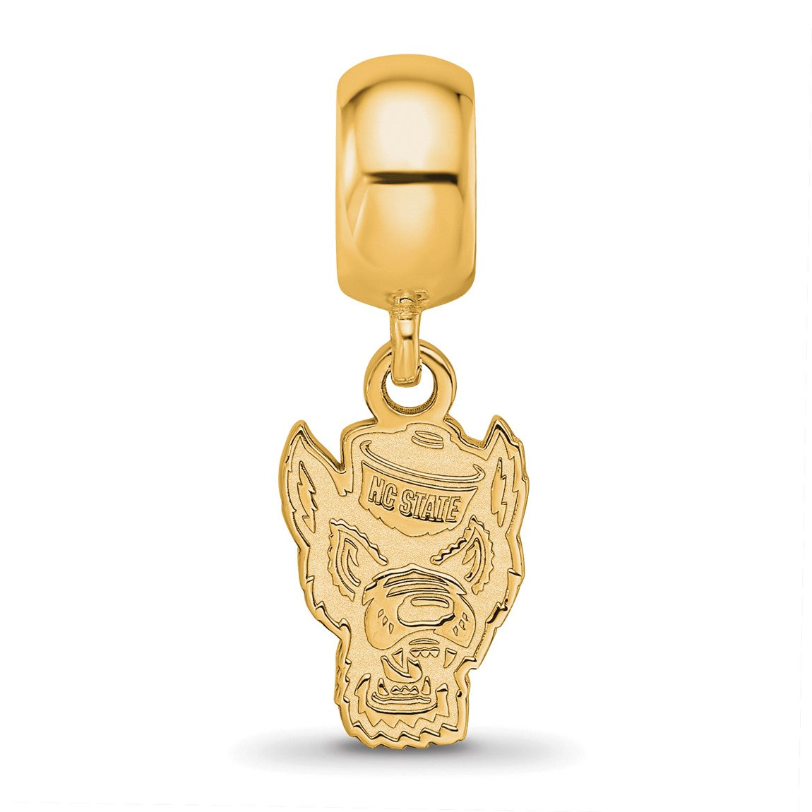 Sterling Silver Gold-plated LogoArt North Carolina State University Wolf Small Dangle Bead Charm